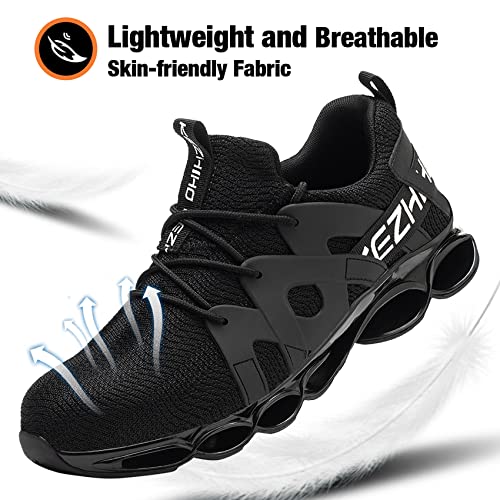 Kezhiho Men's Women's Steel Toe Work Sneakers, Yellow, Lightweight Breathable, Slip Resistant, Indestructible Construction, Safety Shoes 4
