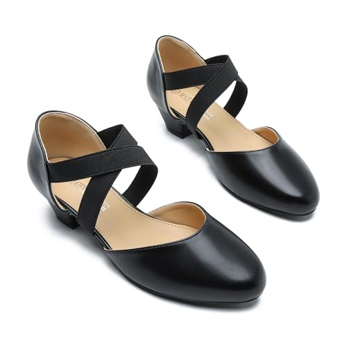 More information about Women's Low Chunky Heel Pumps Elastic Crisscross Strap Pull On Dress Dance Shoes
