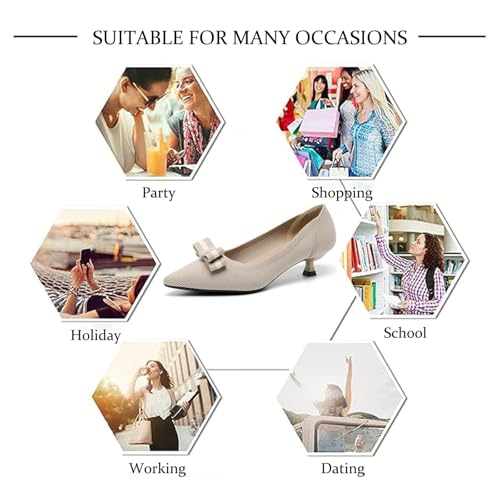 More information about Women's Knit Kitten Heel Pumps Fashion Bow Decoration Closed Pointed Toe Slip On Low Heel Dress Shoe Summer Comfort Breathable Mesh Formal Pumps for Everyday Parties Evening Dates