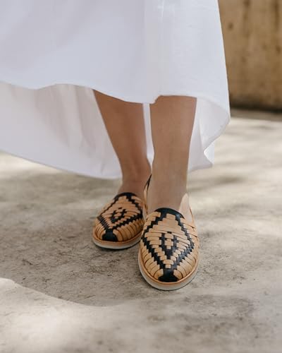 Mexico en la Piel Women's Huarache Sandals - Genuine Leather, Handcrafted Slip-On Flats with Two-Tone Interwoven Design, Lightweight, Comfortable 6