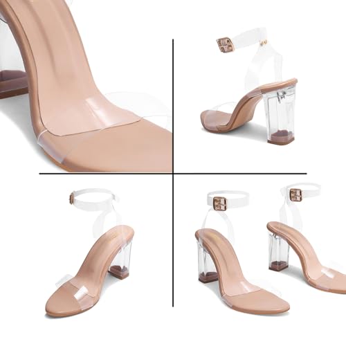 Transparent Block Heels for Women and Girls – Clear Heels, Nude Heels for Women, Stylish Block Heel Sandals for Party, Evening & Casual Wear 6
