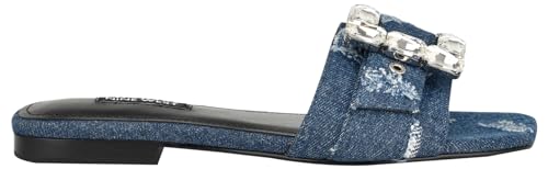 • Complete your outfit in the Nine West Matter flat sandal. It features a square toe, slip-on silhouette and an embellished buckle on the upper strap. This sandal is sure to impress! Founded in 1978, Nine West empowers women to take on the world in style, from day to night.