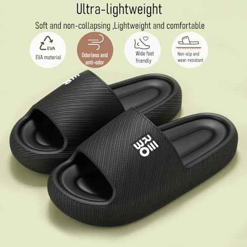 Bathroom Slippers for Men Women,Shower Shoes Thickened,Slippers Indoor Home Beach Non Slip Anti-Slip Quick Drying Pool Slides,Black 5