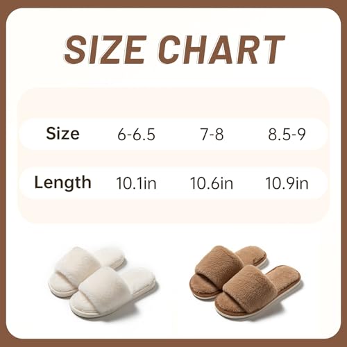 Womens Fuzzy Open Toe House Slippers Indoor Cotton Bedroom Slippers Slides for Women, Cozy Soft Fluffy Slides 6