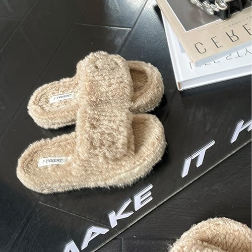 ChayChax Women’s Plush Warm Slide Fuzzy Slippers Open Toe Cozy Houses Shoes Non Slip Platform Indoor Slippers With Adjustable Hook and Loop 6