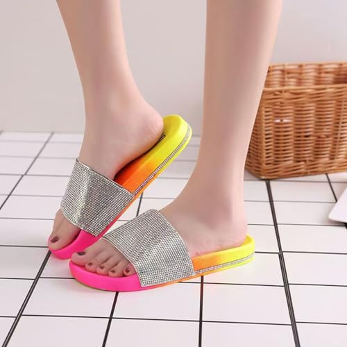Ladies' slippers, sandals, home flat, fashionable, casual shower, rhinestones, ladies' shiny one foot slippers with soft leather slippers, suitable for summer 6