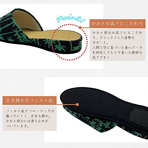 • This slipper is made in Japan with a hand-towel dyed using the Chusen dyeing technique on the upper and edge, and an Igusa insole. It is not waterproof. These slippers prioritize both design and quality, including comfort, for a comfortable and enjoyable time spent indoors.
