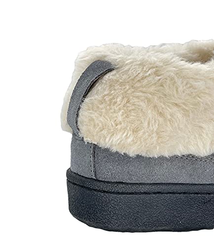 HOT ! Clarks Womens Slipper Suede Ankle Bootie JMH1883 -Plush Faux Fur Collar and Lining - Indoor Outdoor House Slippers For Women (9 M US, Pewter)
