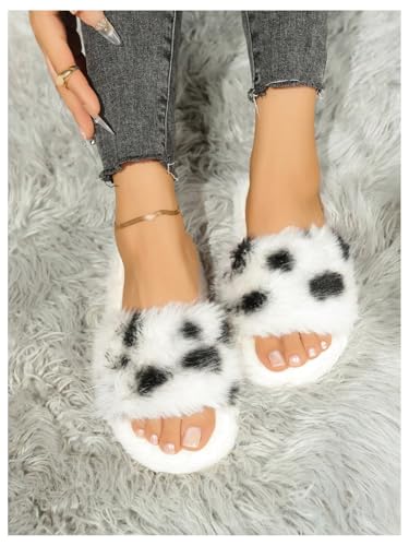 MakeMeChic Women's Cute Cow Print Faux Fur Home Slippers Open Toe Fuzzy Indoor Shoes 5