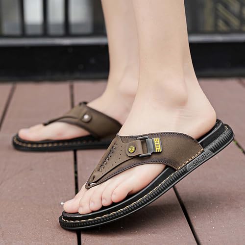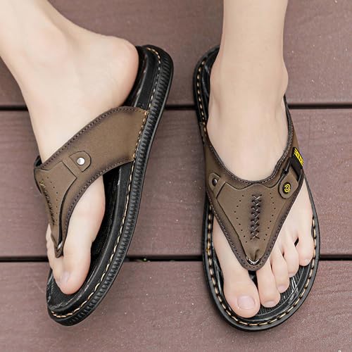 Premium Men's Leather Flip Flop Sandals Durable Pigskin Upper Anti Slip Rubber Sole Fashion Casual Sandals Hand Stitched Enjoy Comfort and Fashion 6