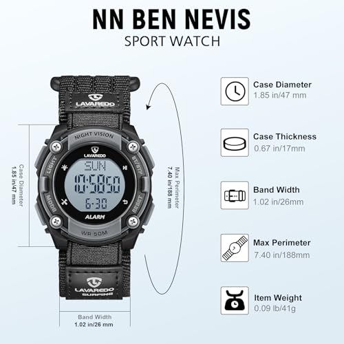 NN BEN NEVIS Mens Digital Watch, Outdoor Sport Waterproof Watches for Men with Alarm Calendar Stopwatch Chronograph Back Light 6
