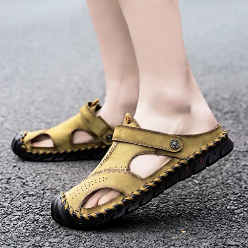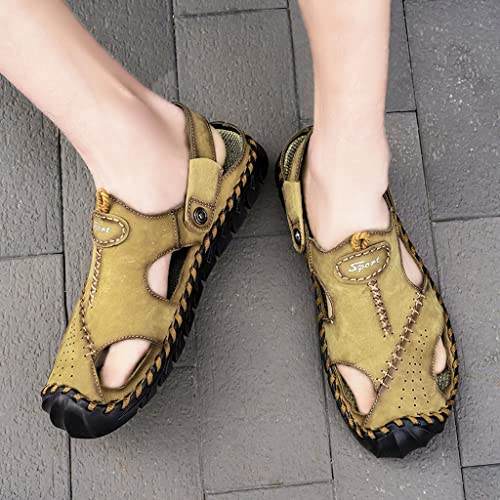 Slip on Roman Sandals for Men Retro Leather Hollow Athletic Sandal Casual Soft Lightweight Summer Shoes 7