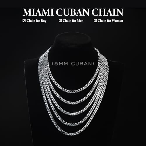 HOT ! KRZ Silver Cuban Link Chain for Men 5mm Miami Chains for Men Stainless Steel Chains 925 Sterling Silver Necklace for Men and Women Jewelry