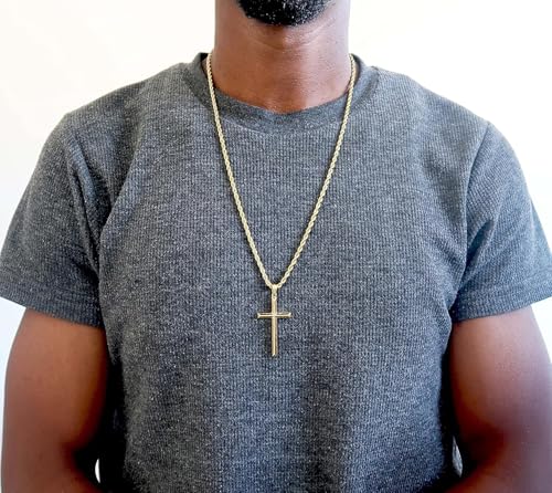 18K Gold Rope Chain Style Cross Pendant Necklace 3MM Cross Necklace Clasp for MEN, HUSBAND Thin for Charms Miami Cuban Link Diamond Cut Religious Beveled Edge 1