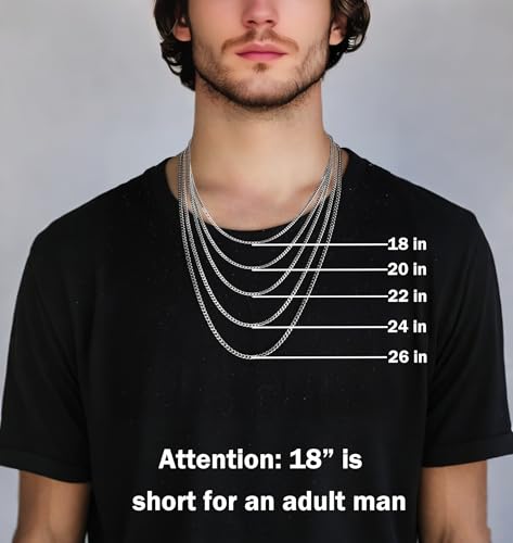 • Size: This silver chain for men offers 3.5mm/5mm widths and 18"-26" lengths. Hypoallergenic stainless steel ensures zero irritation for sensitive skin