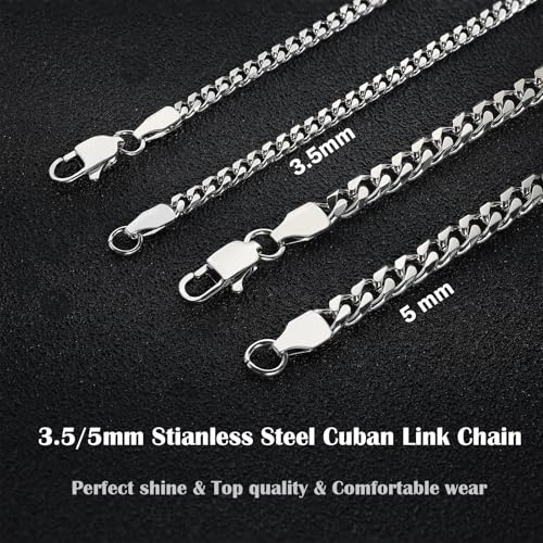 3.5mm/5mm Silver Stainless Steel Cuban Link Chain Necklace Jewelry for Men, 18-26 Inches 3