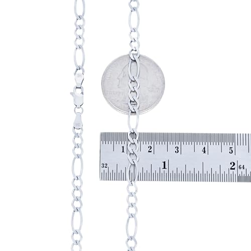 HOT ! Nuragold 14k Real White Gold Solid Figaro Link 4.5mm Chain Necklace (18"-30") Italian Jewelry for Men
