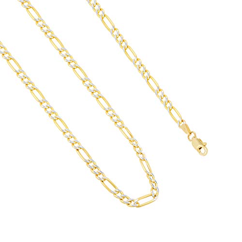 Nuragold 14k Real Yellow Gold Figaro Link 2.5mm Diamond Cut Pave Chain Necklace (16"-26") Two Tone Italian Jewelry for Men & Women 7