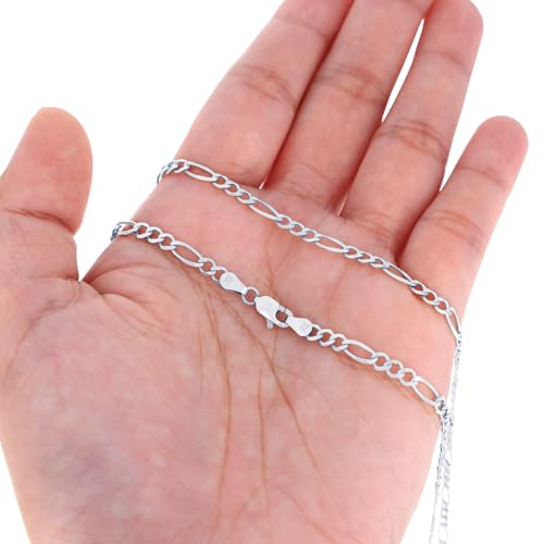 More information about Nuragold 10K Real White Gold Solid Figaro Link Chain Necklace 16"-30" (2.25mm-6.5mm) Italian Jewelry for Men & Women