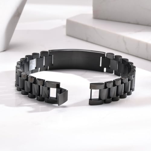 Medical ID Bracelet for Men: Free Engraving Black Masculine Watch Band Style Medical Alert Wristband Personalized Medic ID Bracelet Jewelry for Men 7