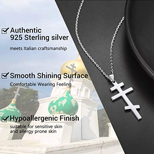 More information about PROSTEEL 925 Sterling Silver Russian Orthodox Cross Necklace For Men Women, 18inch-20inch Adjustable, Come with Box