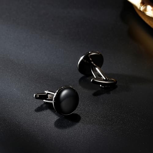 ORAZIO Cuff Links Mens Stainless Steel Cuff Links and Studs Set Gold Black Cufflinks for Men Tuxedo Studs Buttons for Formal Kit Business or Wedding Shirts 6