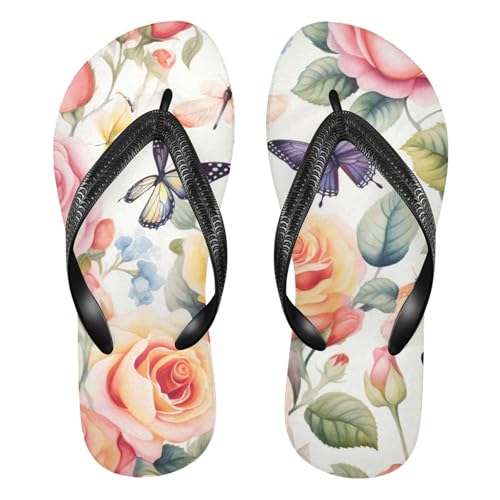 Womens Flip Flops Butterfly Rose Floewr SpringNon-Slip Casual Beach Slippers Rubber Sandals214B3153 1