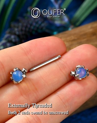 OUFER 14G Nipple Rings - 316L Surgical Steel Piercing Jewelry, 2PCS Pink Opals Surrounded by Dragon Claws Barbell 2