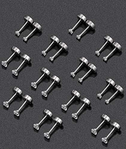 HOT ! Tornito 12 Pairs Tiny Stud Earrings Stainless Steel Round Cubic Zirconia Barbell Stud Earrings Set For Men Women Screw Flat Back Earrings 2MM-3MM 20G