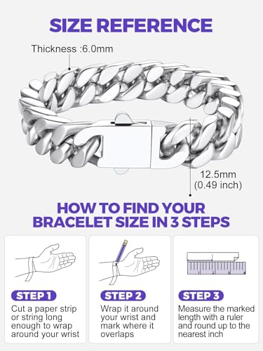 • Link Chain Bracelet: 12mm Wide link chain bracelet for men,urban street-wear jewelry, will never fade, simple and classic design, you can wear it everyday and at any accasion