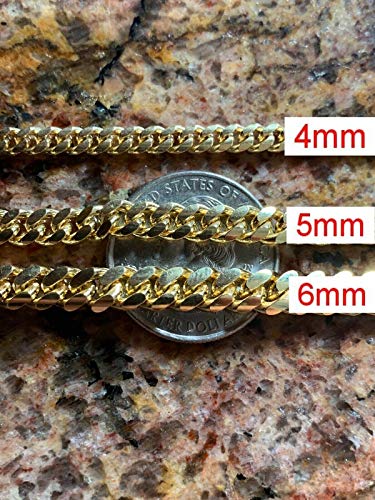More information about HarlemBling Solid 925 Sterling Silver - 14k Gold Plated - Miami Cuban Link Chain Or Bracelet - Box Lock Cuban Link 4-10.5mm - Italy Men's Necklace