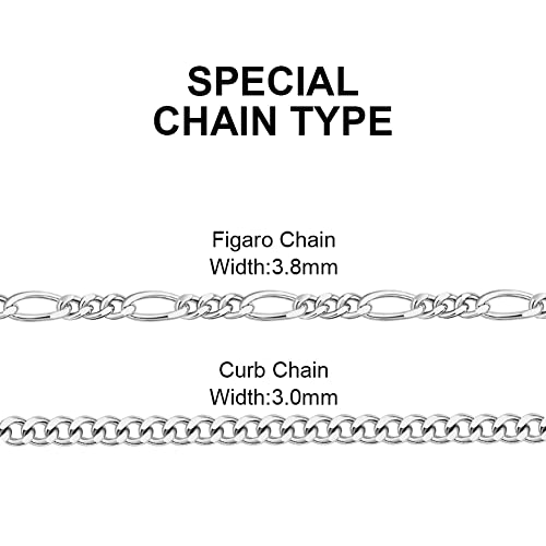 • [Chain Type& Length]: Thickness of the customized necklace is 0.05''. The width of Curb Chain is 3.5mm and Figaro Chain is 3.6mm. Thick chains show more manly charm. Chain length: 14"/ 16"/ 18"/ 20"/ 22"/ 24".