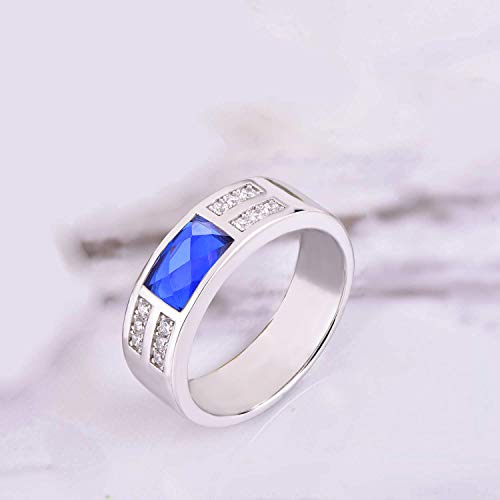 YL Men's Wedding Band Engagement Rings 925 Sterling Silver Flat Cut Birthstone Anniversary Jewelry 7