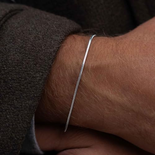 Silver Bracelets for Men Women 2mm Snake Cuban Mens Bracelet 6.5/7/7.5/8/8.5 Inches Bracelets Set Silver Mens Jewelry Gifts for Men 6
