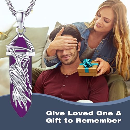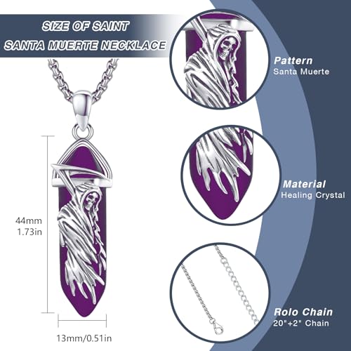 • DESIGN OF GRIM REAPER NECKLACE -- The necklace features an image of Santa Muerte combined with black healing crystal, intricate lines and high-resolution pattern create a unique harmony and attract lots of attention, complement both formal and informal outfits.