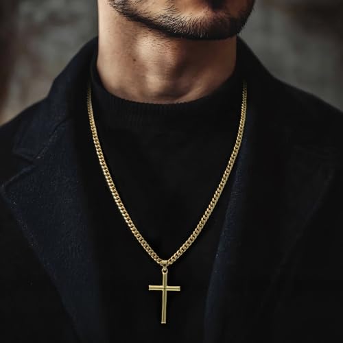 • TAILORED CHOICES - Available in 20", 22", and 24" lengths, our gold plated cross chain for men caters to personal preference and comfort, ensuring the mens cross necklaces complements any attire. Each gold cross necklace for men is elegantly packaged in an exquisite box, ready to be cherished by someone special