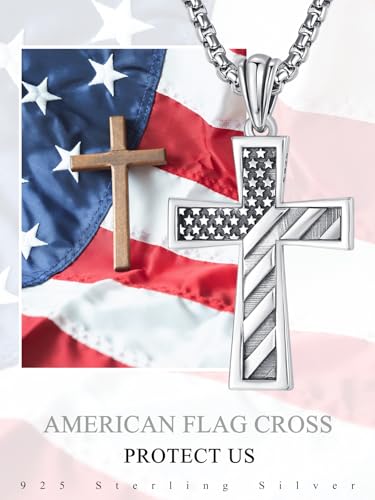 • MATERIAL - American flag cross jewelry is made of 925 sterling silver, no nickel, no lead, no cadmium and hypoallergenic. It won't turn your skin green or black!