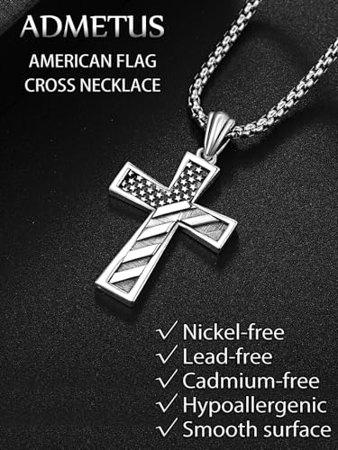 • SACRED GIFT - Well packaged by ADMETUS gift box and a polishing cloth inside. Birthday, Valentine's Day, Father's Day, Mother's day, Christmas, Anniversary, Friendship, Thanksgiving or Just a surprise for your love. American flag cross necklace is an excellent choice for expressing love.