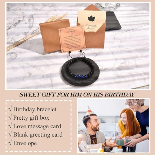 • Material: This birthday bracelet is made of high-quality 8MM black onyx stone and blue tiger eye stone. These stones can absorb negative energies, bring good luck, release fear and anxiety. The most popular fashion handmade products nowadays