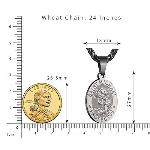• St Michael Medal: 1.1*0.7 inch (27*18mm), resistant wheat chain: 24 inches.
