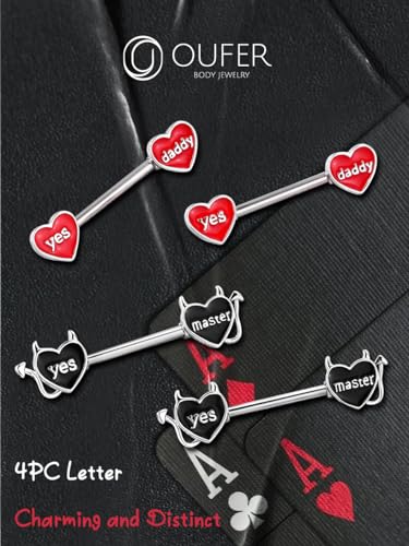 More information about OUFER Devil Nipple Rings 4PCS 316L Letter Stainless Steel Nipplerings Barbells Nipple Piercing Jewelry for Women