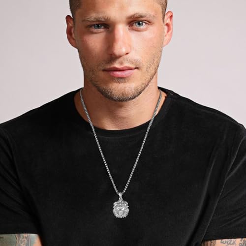 • DESGIN - This sterling silver lion necklace features a majestic lion head pendant, a powerful lion head symbolizing strength, courage and leadership. Paired with a stainless steel necklace, this striking design embodies the strong presence and elegance of the King of the Jungle.