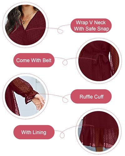 Women's Fall Long Sleeve Spring Dress Wrap V Neck Swiss Dot Casual A-Line Midi Dresses with Belt 4