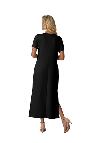 Lepunuo Casual Dresses for Women Crew Neck Short Sleeve Wrinkle-Free Split Maxi Dress Vacation Outfits with Pockets 3