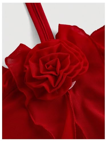 SOLY HUX Women's Summer Dresses Halter Bodycon Irregular Ruffle Trim 3D Flower Cami Mini Party Club Dress 3