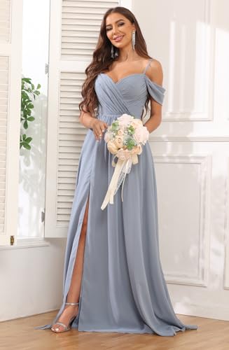 • FEATURES:Off the Shoulder,Spaghetti Straps,Cold Shoulder,V Neck,Chiffon,Side Pockets,Bridesmaid Dresses for Wedding,Long Bridesmaid Dresses for Women with Slit,A Line,Ruched,Pleated,Invisible bra inside,Corset Lace Up Back.