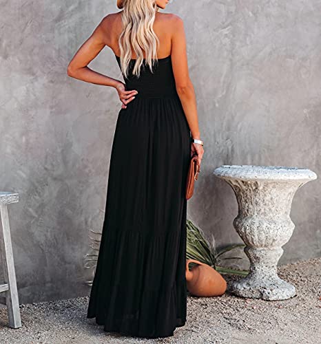 R.Vivimos Womens Summer Cotton Strapless Elastic Smocked Boho Beach Casual Flowy Maxi Tube Dresses 1