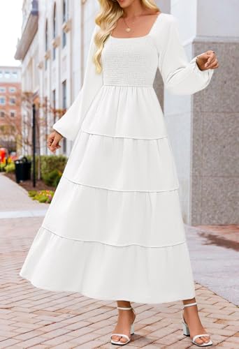 More information about MEROKEETY Women's Summer Fall Long Sleeve Ruffle Tiered Dress 2025 Flowy Layered Square Neck Smocked Maxi Dresses
