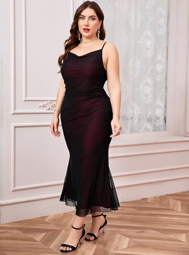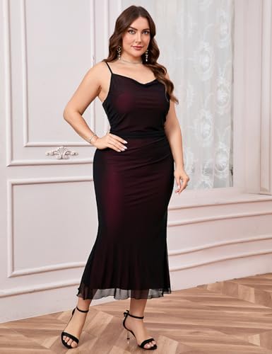 CYCLAMEN Plus Size Mesh Mermaid Dress Ruched Spaghetti Strap Fitted Sleeveless Cami Dresses Cocktail Party Wedding Guest 1
