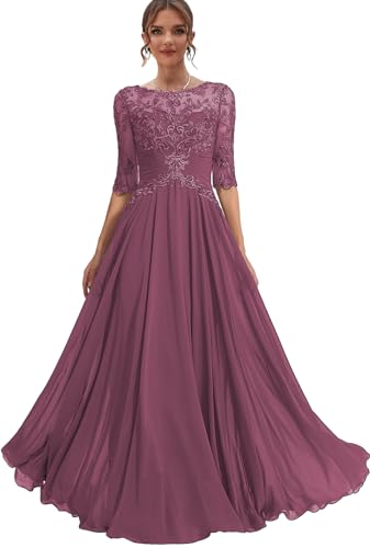 More information about Chiffon Mother of The Bride Dresses for Wedding Lace Formal Dress with Sleeves Long Evening Party Gown